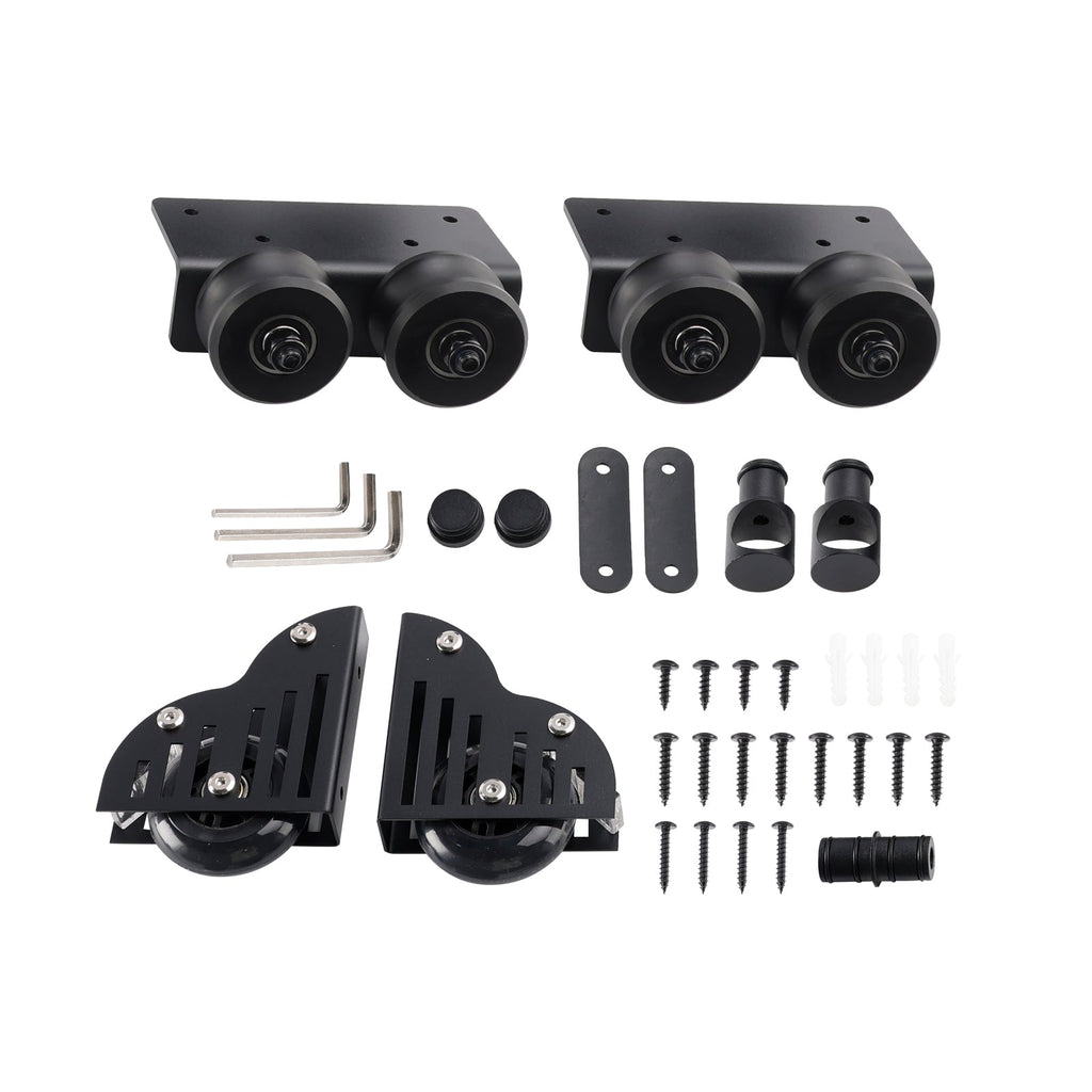 【Säkerhetshjul】Det svarta hårdvarukitet för biblioteksstege innehåller hjul, uppdelade i övre och nedre hjul. De övre rullarna är placerade mellan skenorna och säkerställer tyst och jämn glidning, medan de två små rullarna minskar risken för urspårning och fall. De nedre hjulen har högkvalitativa polyuretanhjul med stålkärnor och bromsar, vilket säkerställer robust slitstyrka och hållbarhet. Bromsen kan låsas när stegen är upprätt, vilket ökar säkerheten.