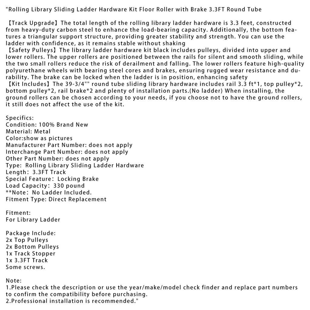 Rullande biblioteksförlängningsstege, hårdvarusats, golvrulle med broms, 3,3 fot runt rör