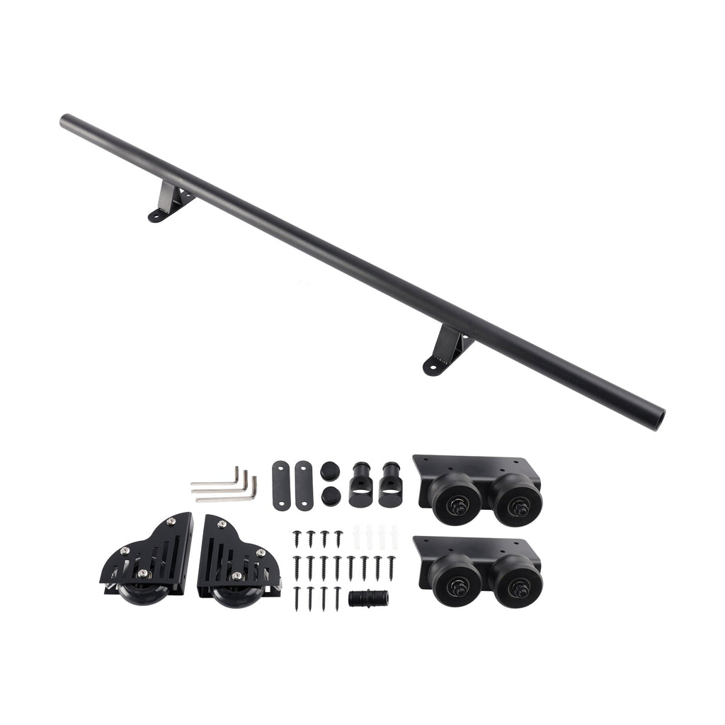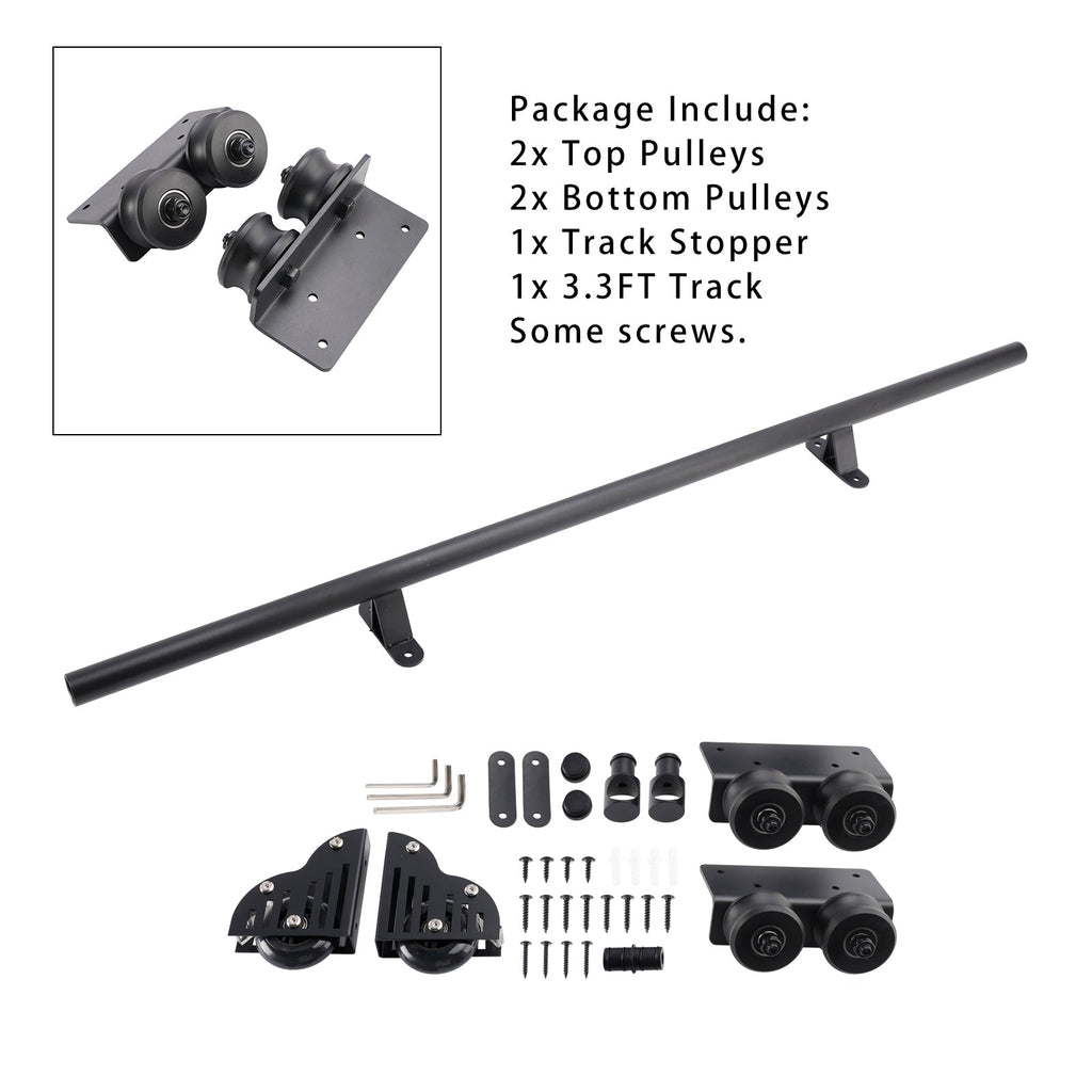【Satsen innehåller】 39-3/4""Rundrörs skjutbara bibliotekshårdvara inkluderar 3,3 fots skena*1, övre rulle*2, nedre rulle*2, skenbroms*2 och många installationsdelar. (Ingen stege) Under installationen kan golvrullarna väljas efter dina behov. Om du väljer att inte använda golvrullarna påverkar det fortfarande inte användningen av satsen."
