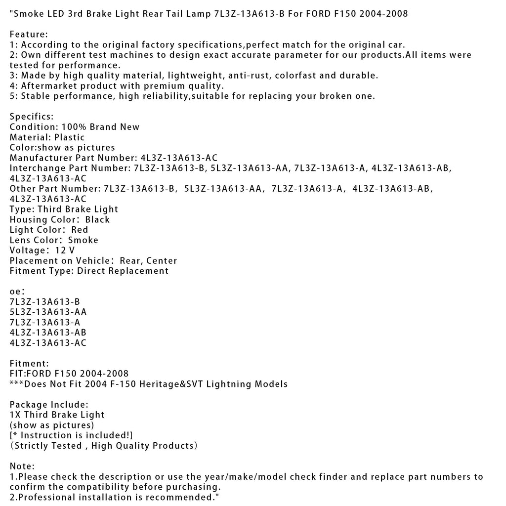 Smoke LED 3rd Brake Light Rear Tail Lamp 7L3Z-13A613-B For FORD F150 2004-2008
