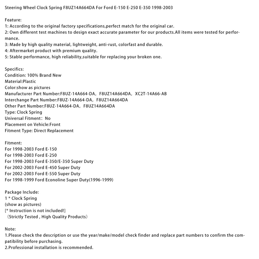 Wickelfeder für Lenkrad F8UZ14A664DA für Ford E-150 E-250 E-350 1998-2003