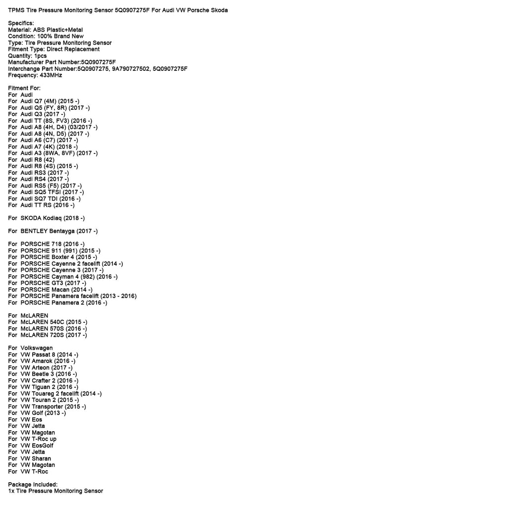 TPMS Reifendruck Überwachung Sensor 5Q0907275F Für Audi VW Porsche Skoda