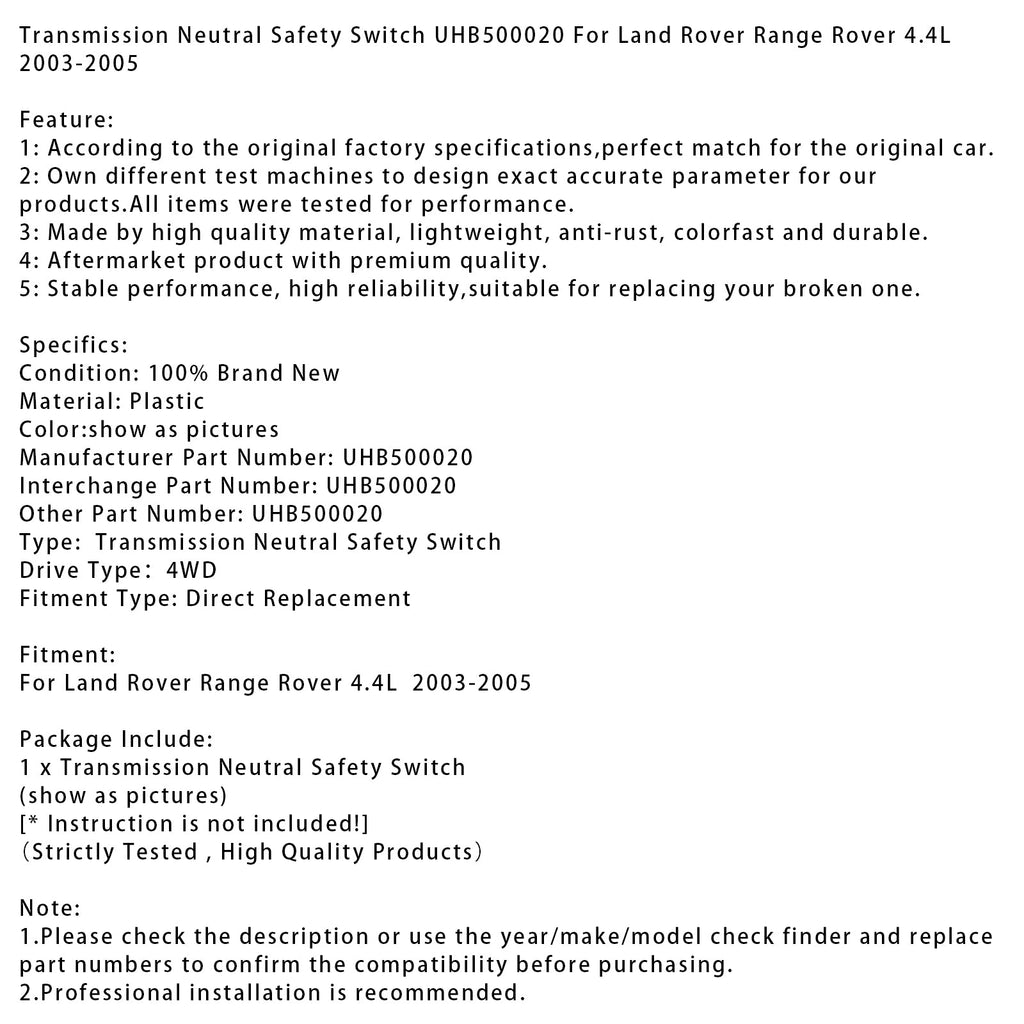 Säkerhetsbrytare för neutral växellåda UHB500020 för Land Rover Range Rover 4.4L 2003-2005